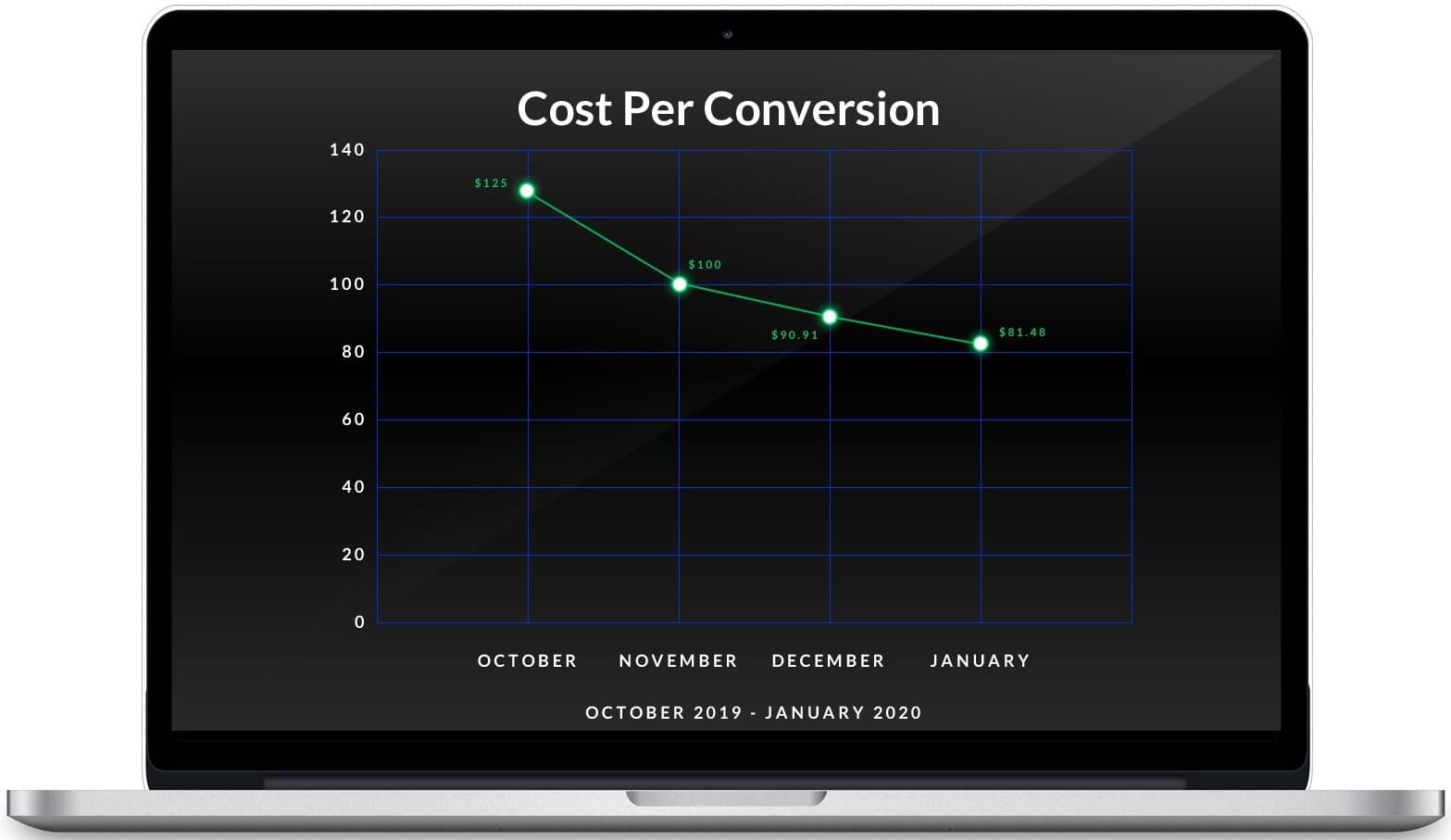 We've been able to keep the number of clicks the client receives pretty consistent throughout the campaign. We've also been able to DECREASE the cost-per-click CPC by 19% since we've started the campaign. This means we have been really cost efficient with Ad budget.